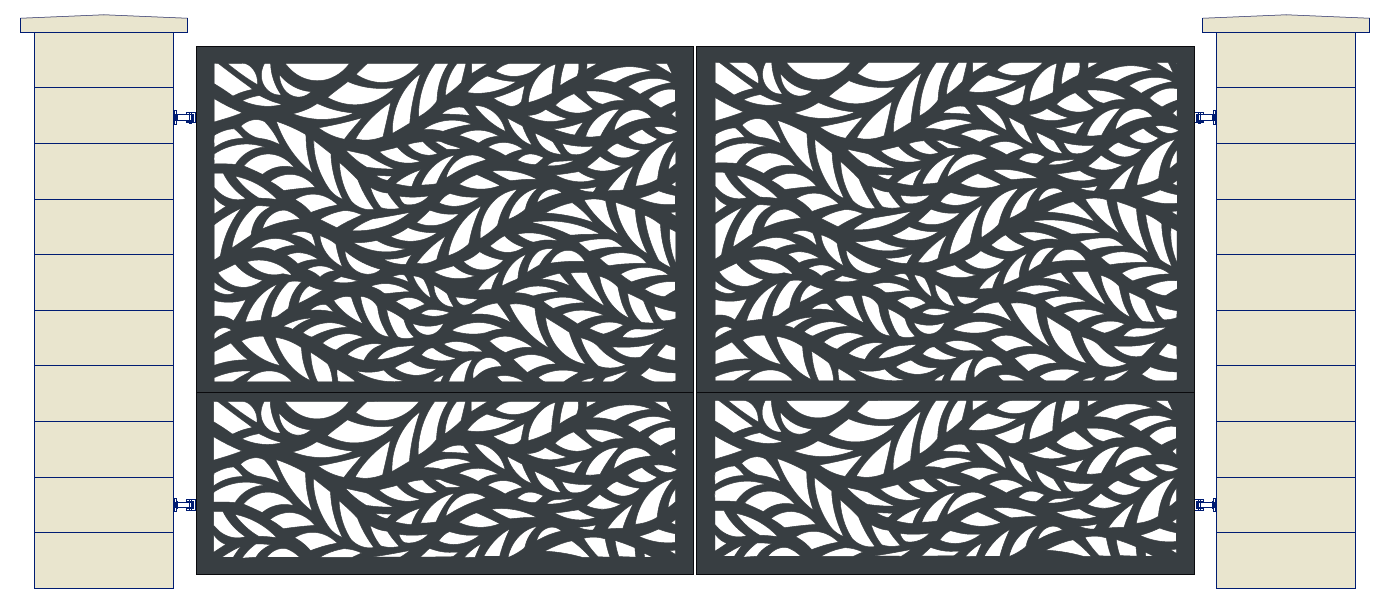 A telepítésnél figyelni kell arra, hogy az oszlopok közötti távolság 14 cm-el nagyobb legyen, mint a keret mérete (65 mm bal zsanér, +10 mm rés a két keret között, 65 mm jobb zsanér) Pl. 3000x1700 mm-es kapunál az oszlopok közötti méretnek 3140 mm-nek kell lennie. Magassága pedig legalább 1750 mm.